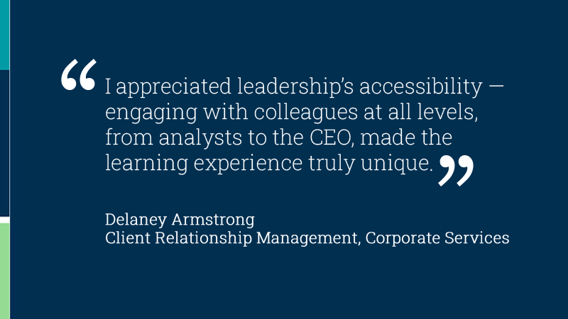 You'll have multiple opportunities to meet with employees across the organization at all levels, as well as external networking events.