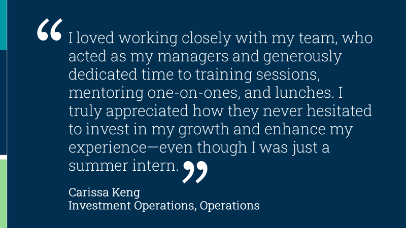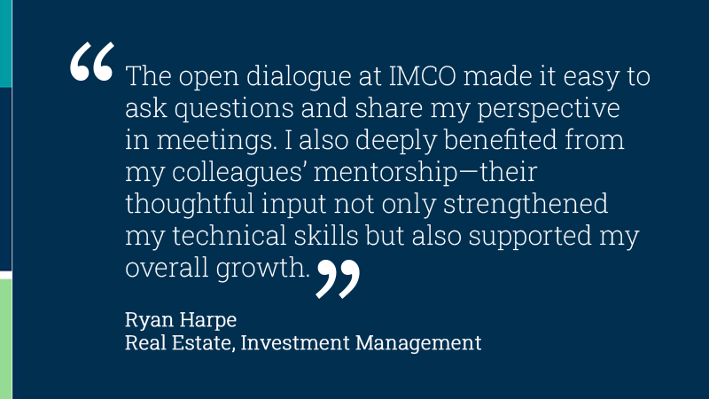 - Meaningful experience: Whether you're interested in Investments or Corporate roles, you'll gain hands-on experience across key areas of our business. Corporate teams include Client Relationship Management, Legal & Compliance, IT, HR, Finance, and more, giving you a well-rounded view of how IMCO operates.